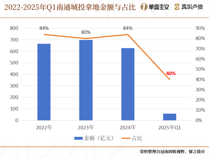 一季度南通城投拿地金額僅有57億元,還不到去年全年的10%,規模佔比也僅為40%