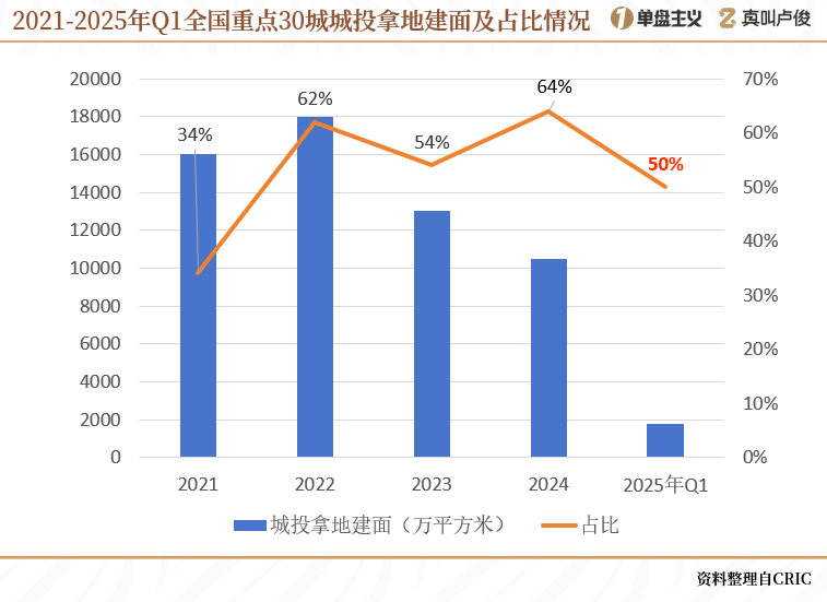 一季度,全國重點30城的城投拿地總建面不足2000萬平方米