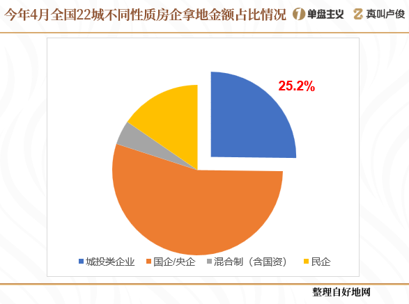 城投類企業拿地金額只有219.8億元,佔比進一步下滑到了25.2%