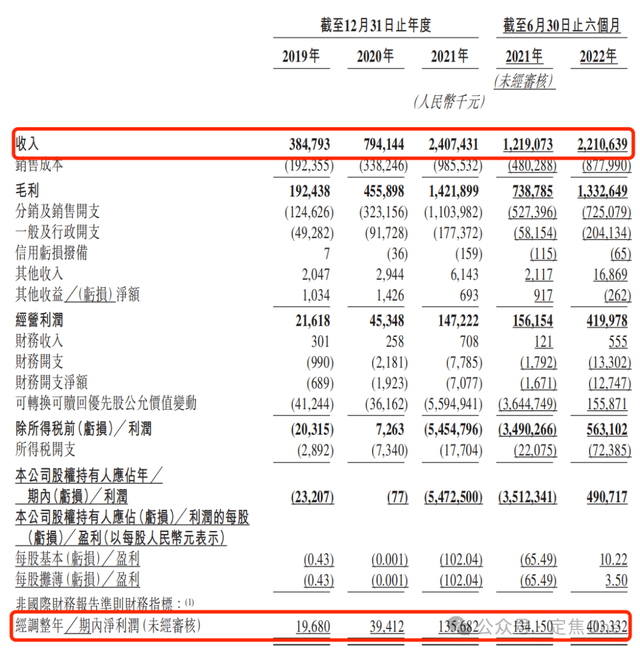 利潤方面,2019年-2021年,蕉下經調整淨利潤從0.19億元增至1.36億元,2022年上半年為4.03億元。