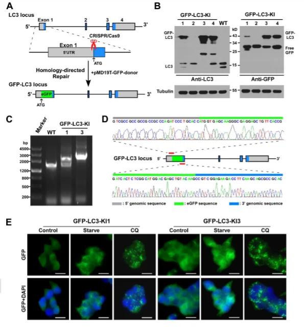 圖2: 293FT細胞中MAP1LC3B基因座處敲入GFP-LC3