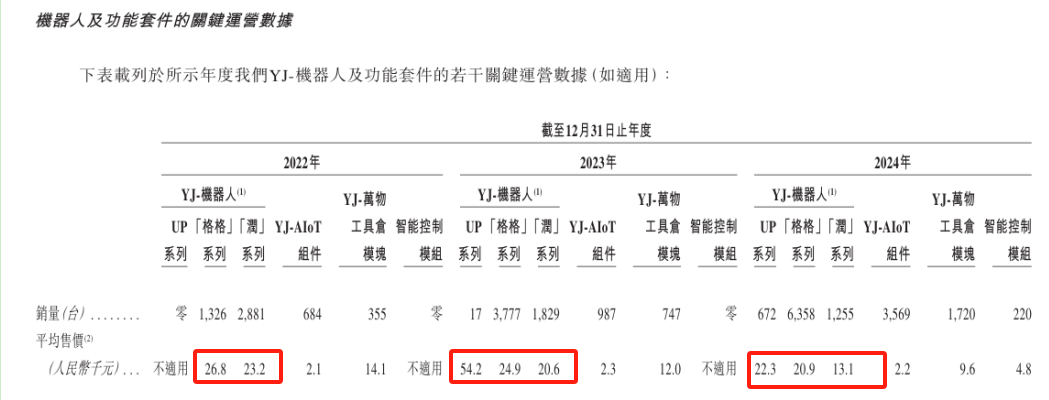 招股書顯示,2024年,雲跡科技首發單品“潤”系列的均價已低至1.31萬元,同比大降36.41%;二代產品“格格”系列均價為2.09萬元,同比減少16.04%;2023年推出的新品“UP”系列均價為2.23萬元,同比降近六成。