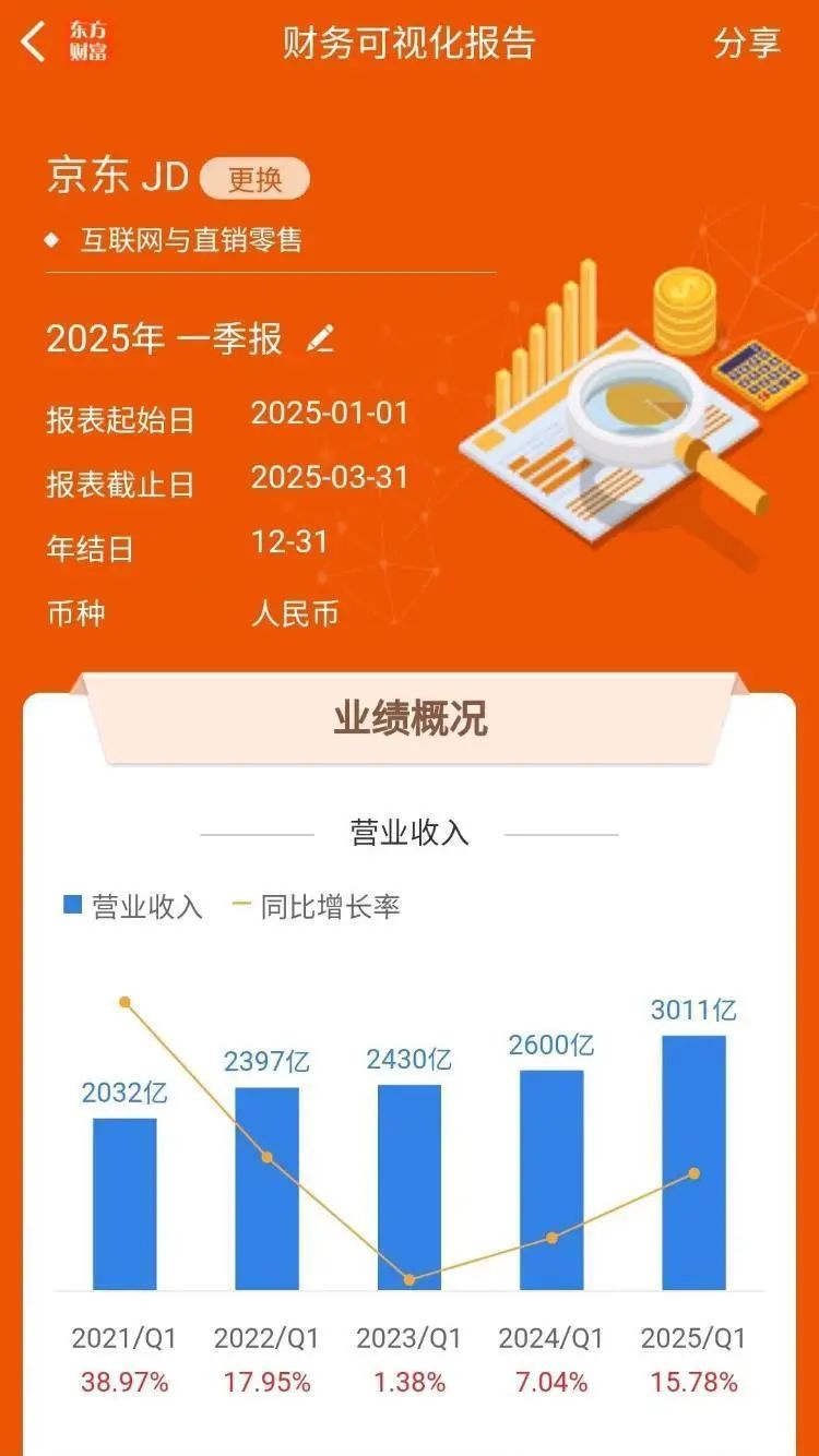 從整體數據來看,京東一季度收入達到 3011 億元,同比增長 15.8%,這一增速不僅創下近三年新高,更是遠超同期電商行業平均增速三倍有餘 。淨利潤方面,109 億元的成績,較去年同期暴漲 52.7%,盈利水平大幅提升。**而最受市場關注的新業務板塊,包含外賣業務在內,收入為 57.53 億元,同比增長 18.1%。**亮眼數據的背後,是京東在外賣賽道投入的巨大精力與資源。