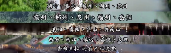 杭州的六和塔、嘉興的煙雨樓、湖北的襄陽城、湖南的岳陽樓、陝西的華山、大理的蒼山洱海……