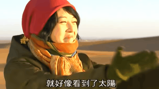周海媚站在撒哈拉沙漠上,看着太陽從地平線上升起。