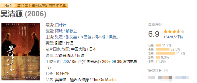 曾經,田壯壯就拍過一部《吳清源》,張震、張艾嘉主演,編劇阿城,實屬王炸組合。