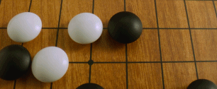 當黑子孤身進入白棋空地,即將打破白棋的局勢。