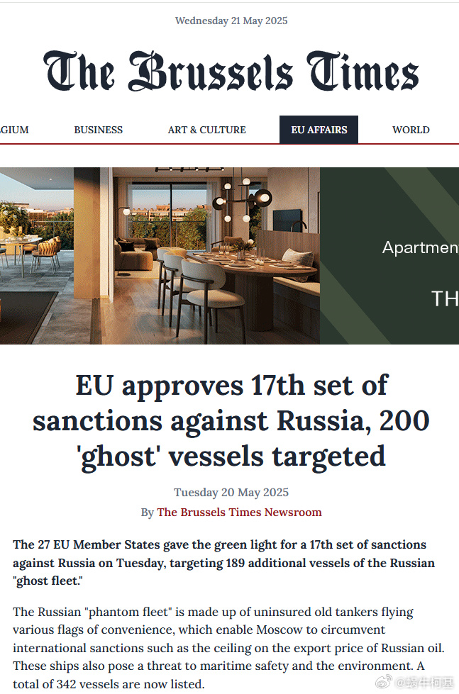 歐盟聲稱俄羅斯“幻影艦隊”由懸掛各種方便旗的未投保老舊油輪組成,是莫斯科規避國際制裁的強力手段,還表示這些船隻也對海上安全和環境構成威脅。目前共有342艘船隻被列入名單。