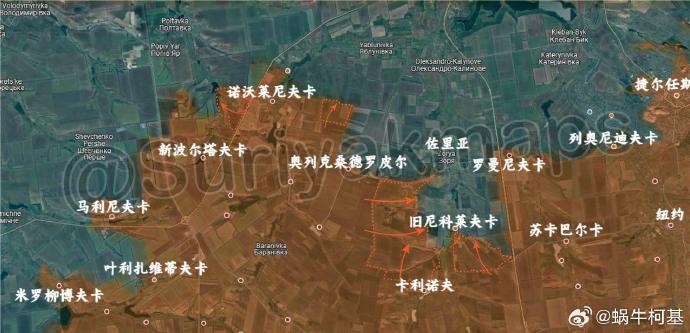4、奧切列季涅:俄軍繼續向新波爾塔夫卡東北推進,還控制了卡利諾夫以北和澤列涅波爾以東的多個陣地,到達了佐里亞郊區。此外,俄軍還在舊尼科萊夫卡及其東南取得了新的進展。