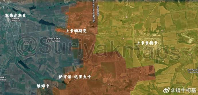 2、塞弗爾斯克:上卡緬斯克的戰鬥即將結束。俄軍除佔領倉庫外,還抵達了該村西端,並在卡米揚卡河對岸的最後幾棟房屋內展開戰鬥。除這條戰線外,俄軍繼續向北推進,直至白山西側。