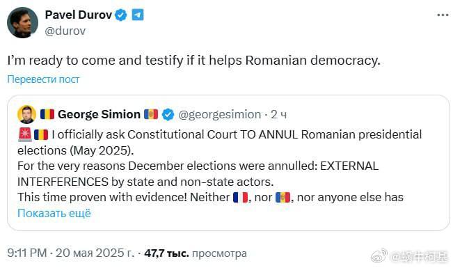 羅馬尼亞第二輪選舉中被陰兵翻盤的西蒙發推,請求憲法法院取消本次選舉,因為有大量的外部干涉。