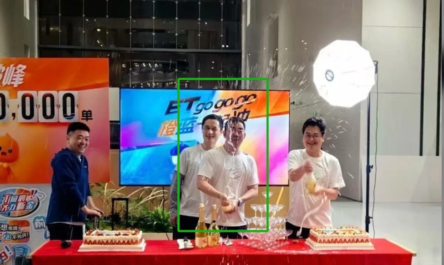 據悉淘寶閃購哈舉辦了一場慶功會,多名高管出席,現場開香檳慶祝日訂單破1000萬,背後的屏幕投影內容為ET go go go,橙藍一起衝。