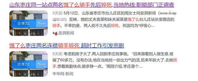 據多家媒體報道,5月份山東棗莊同一站點兩名餓了麼騎手先後猝死,家屬懷疑兩人的猝死與高強度的工作有關。