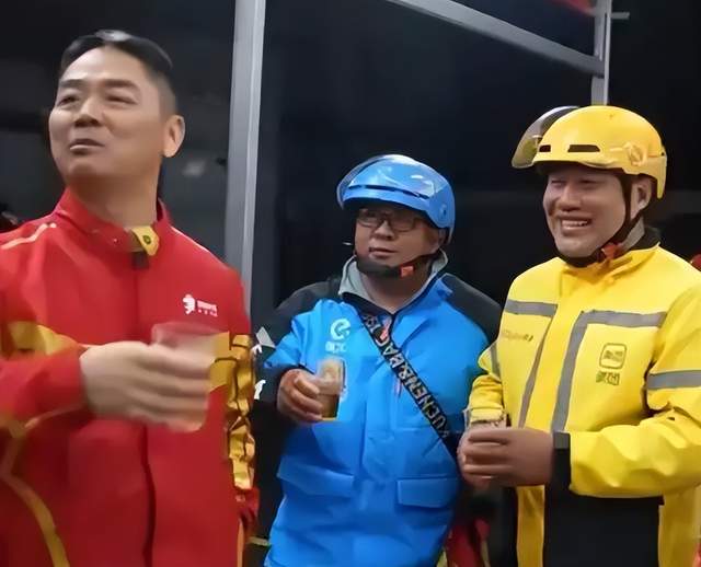 劉強東請外賣員喝酒的飯局中,餓了麼騎手也多次出現在了畫面中。