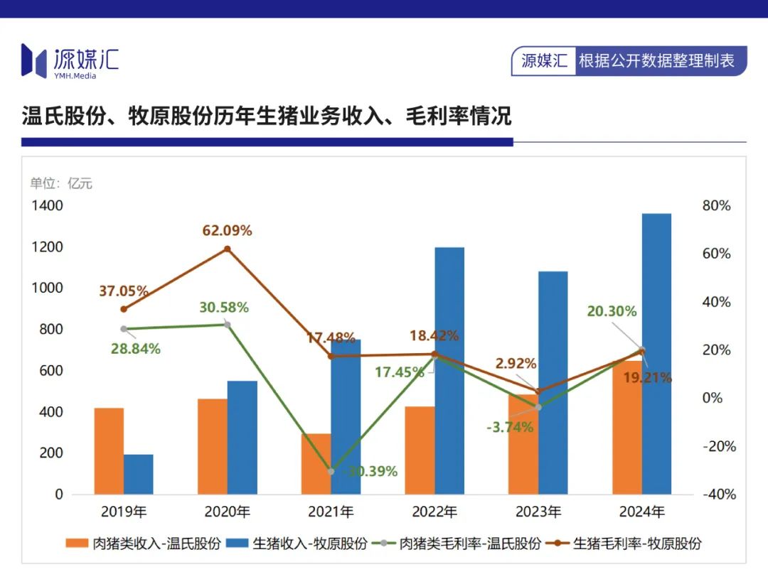 在生豬業務毛利率上,2024年,温氏股份為20.3%,略高於牧原股份的19.21%。