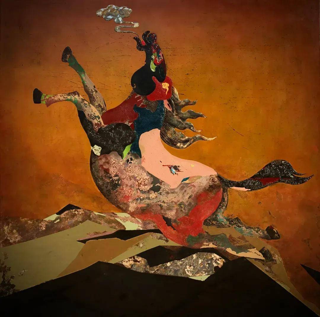 葉國才《馬踏祥雲》 120x120cm 漆畫 2023年