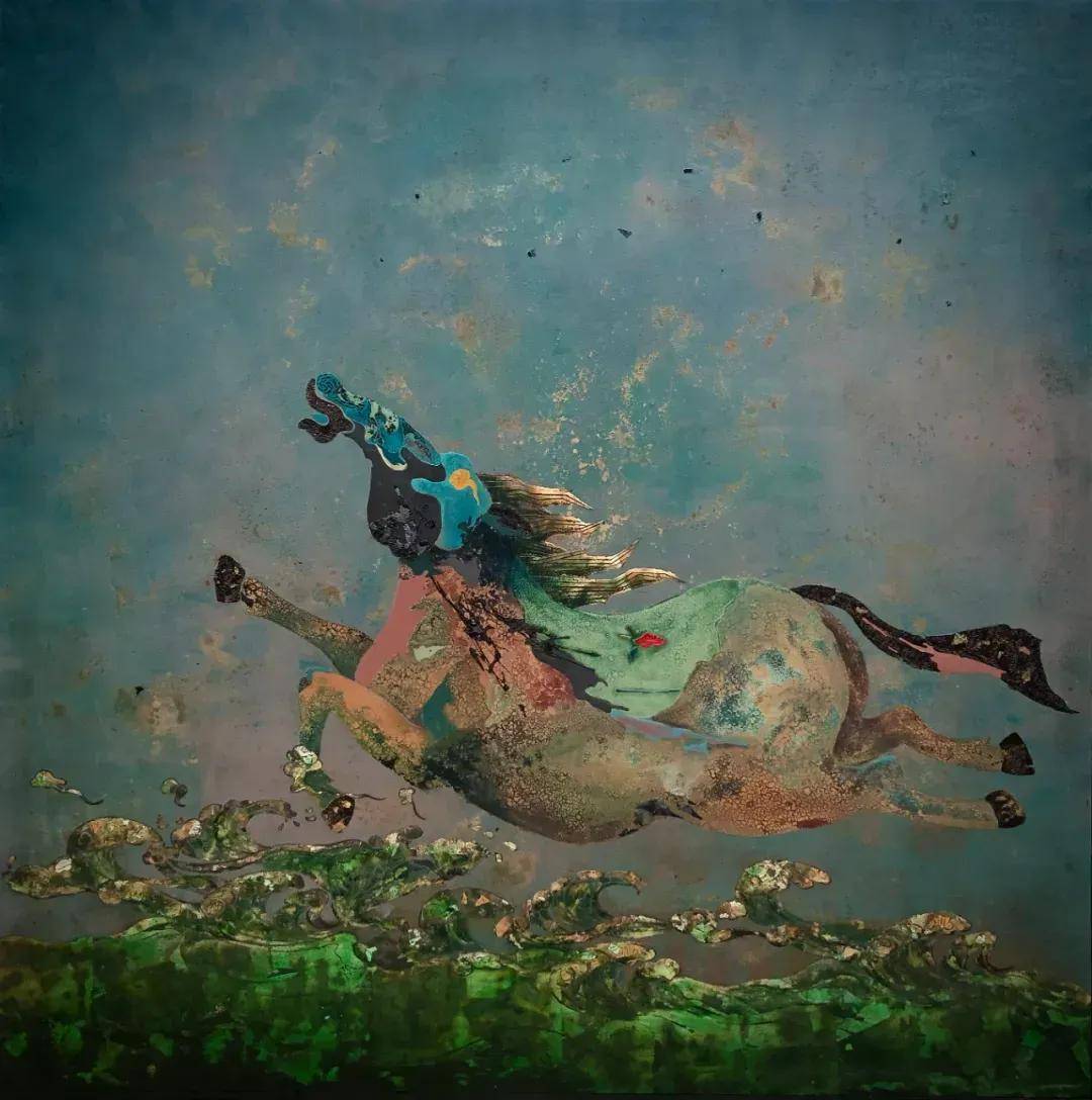 自徐悲鴻以降,“畫馬”成為中國現代美術的重要母題,而葉國才則在漆藝領域開創了新的範式。在《馬·雲》中,駿馬昂首向天的姿態突破了傳統“馬到成功”的吉祥寓意。誇張的鼻孔翕張、暴起的青筋與甩動的尾鬃,分明是當代青年在壓力下的怒吼與抗爭。他以變塗技法制造的斑駁肌理,既似戰馬的傷痕,亦如都市人的精神褶皺。這種“以馬喻人”的敍事策略,使傳統祥瑞符號轉化為現代人的心靈圖譜。正如唐代韓幹“師法自然”的畫馬理念在漆藝中的復活,葉國才筆下的馬不再是文人案頭的玩物,而是具有獨立人格的生命載體。