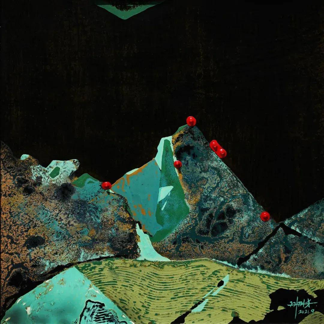 葉國才《遠山系列7》 40x40cm 漆畫 2021年