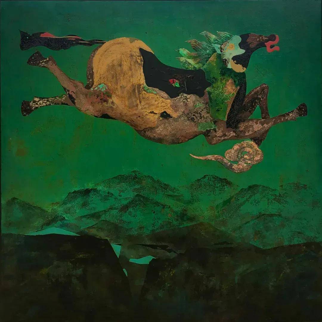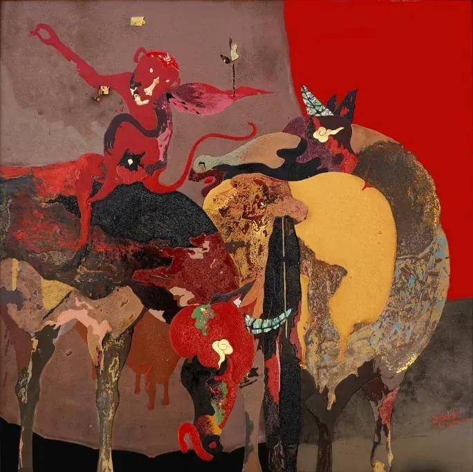 葉國才《馬·雲》 120x120cm 漆畫 2023年