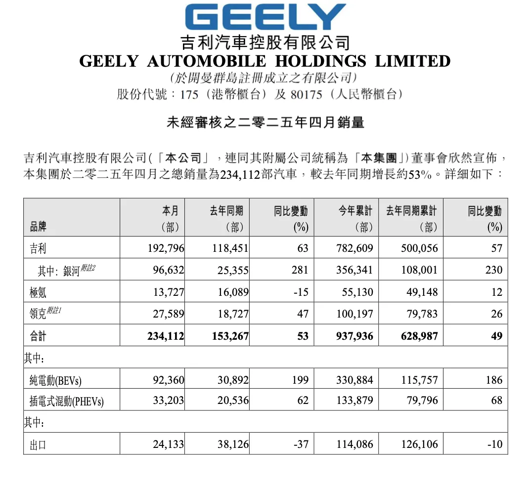 5月7日,吉利發佈公告,宣佈將收購極氪已經發行的全部股份。倘若私有化建議落實並完成,極氪將成為吉利汽車全資附屬公司,實現私有化並於紐交所退市。