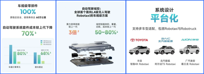 量產元年的定調,“量產”是關鍵。Robotaxi要實現大規模量產,需要兩個條件:可靠性和經濟性。如果和產業鏈結合,那就是技術和車規級可靠性、成本控制和前裝量產設計三大關卡,然後才能抵達商業模式。
