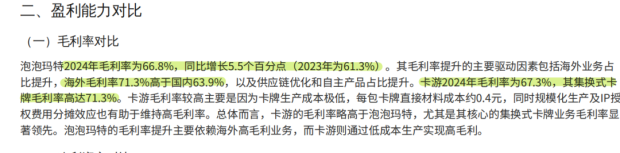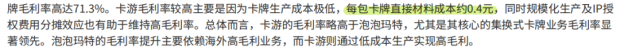 首先,泡泡瑪特通過這兩年突飛猛進的海外高利潤業務,已經把毛利率拉高到 66.8% 的可怕水平。然而,卡遊的毛利率卻做到了 67.3%,並且核心的卡牌業務毛利率更是高達 71.3% 。