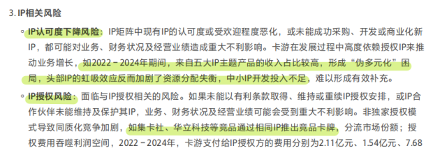因為頭部 5 大熱門 IP 佔走了八成收入,一旦合約到期或者 IP 熱度下滑,業績可能會隨之明顯波動。