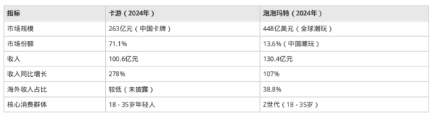 在整體的收入上卡遊也並不遜色太多。2024 年泡泡瑪特和卡遊的收入分別為 130.4 億和 100.6 億元。