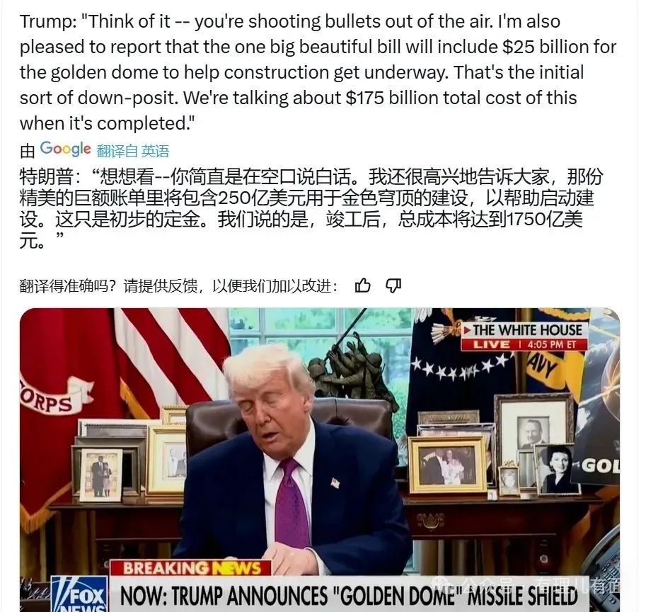特朗普口中三年建成“金穹”,這簡直是比讓幼兒園小朋友三年蓋起摩天大樓還魔幻!