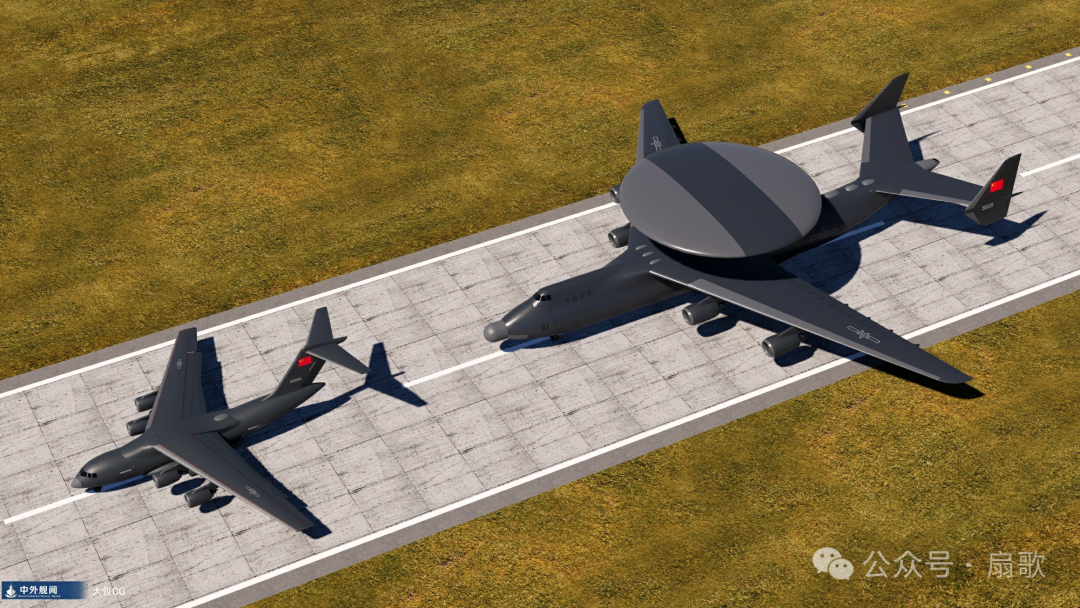 這幾天網絡開始流傳這在一種個頭和安225運輸機差近似的,加裝預警雷達的戰略預警機,採用4台多噸推力的50噸推力大發動,起飛重量會達到600噸的超級運輸機,按照海軍對噸位定義,500噸以下為艇,500噸以上為艦,那麼這種超級預警機放到海里也可以被稱為艦!