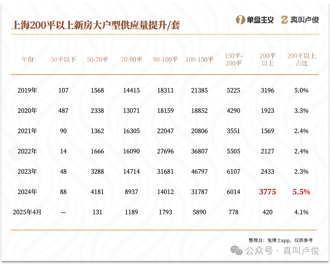整個2024年的上海,200平以上大户型供應量已經高達3775套
