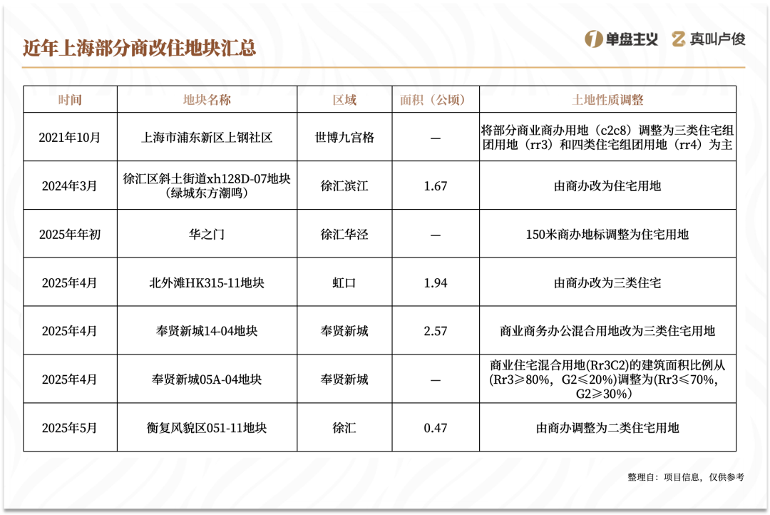 更早還有2021年的世博九宮格,今年年初傳出砍減商辦的徐匯華涇“華之門”,也轉而用於住宅和科研用地