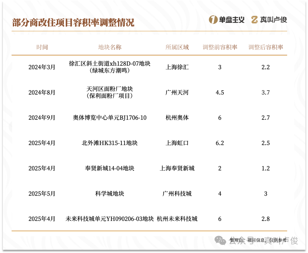 包括上海虹口北灘地塊、杭州奧體地塊、杭州未來科技城地塊三宗地塊,都是從最高6以上容積率下調至2左右
