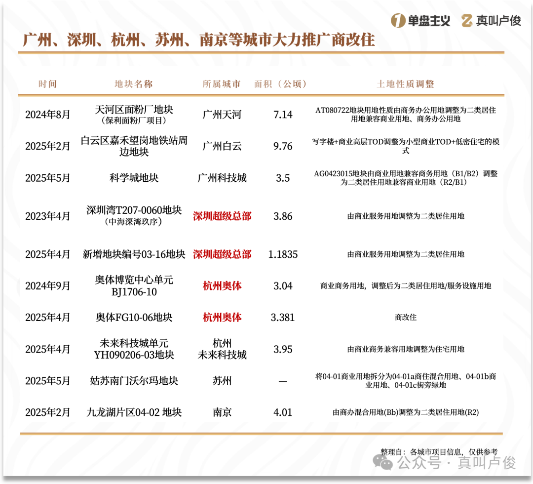 除上海外,今年包括廣州、深圳、杭州、蘇州、南京在內的大量城市都在展開一場轟轟烈烈的商改住浪潮
