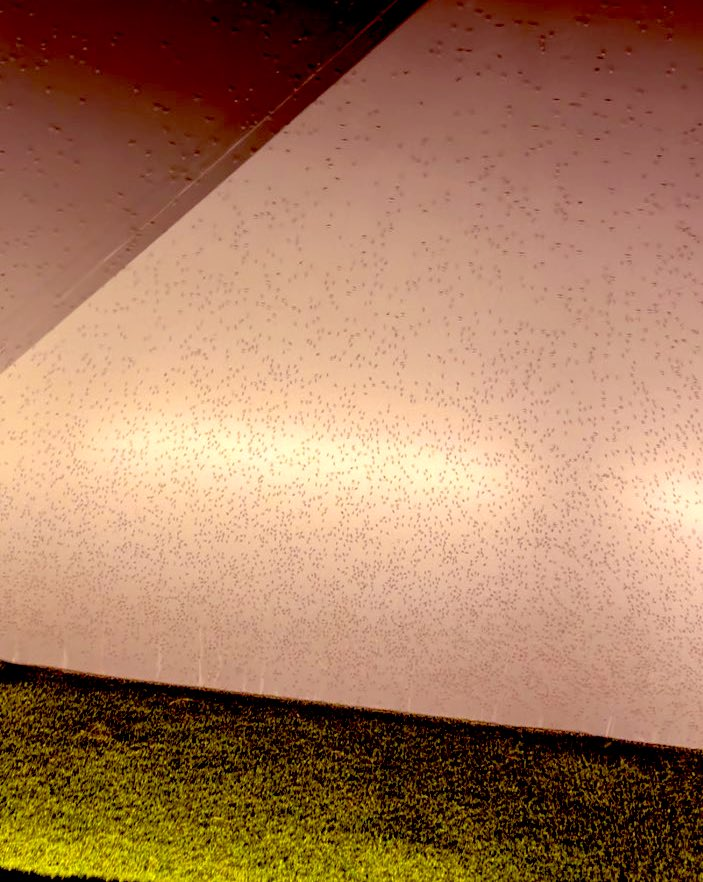 雖然蟲子的問題已經引發了廣泛討論,但我還是準備上傳另一段視頻。這是位於水廣場(Water Plaza)東側的衞星演播室的牆壁,蟲子已經密密麻麻地聚集在上面。如果不盡快採取應對措施,應該之後很快就會有前來捕食這些蟲子的其他生物出現了