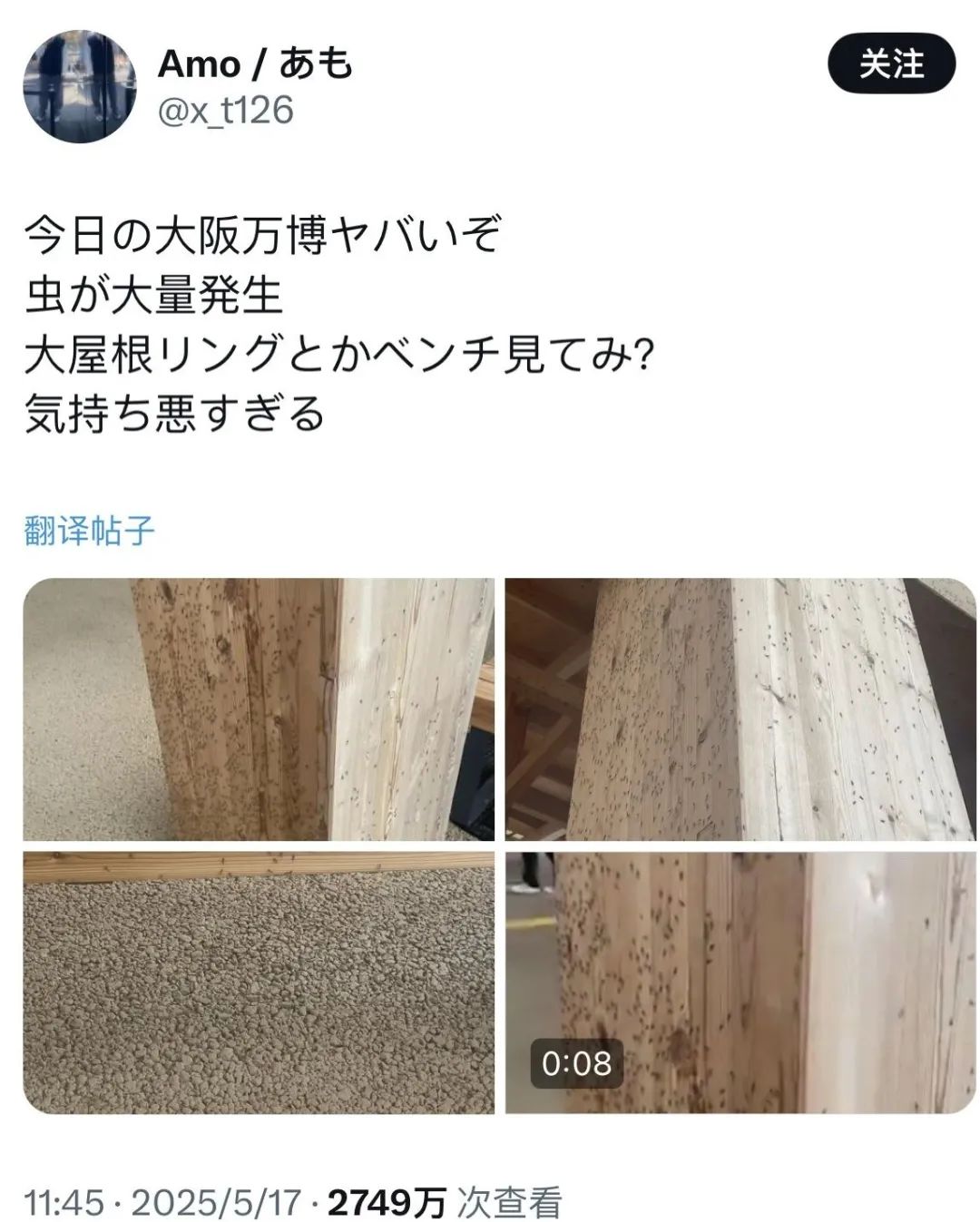 今天的大阪世博會太嚇人了蟲子大量爆發去看過“大屋頂環”和長椅嗎?太噁心了