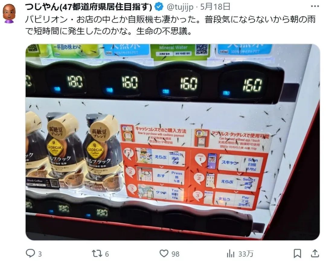 展館和商店裏面,還有自動販賣機周圍到處都是蟲子。多到讓網友忍不住感慨生命的不可思議