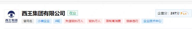 值得注意的是,企查查信息顯示,目前,西王集團仍舊是西王食品的最大股東,但這個大股東已被限制高消費,還存在債券違約等風險。