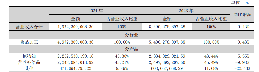 一方面,是其主業的增長乏力。近兩年,疊加消費環境下行,不少調味品企業都遇到了產品價格下滑、銷量走低的困境,西王食品也未能例外。財報數據顯示,2023年,西王食品植物油的銷量下滑12.55%。到2024年,植物油銷量重回增長,同比上年增長了11.88%,但是該業務的營收反而比2023年減少了1.3億元。