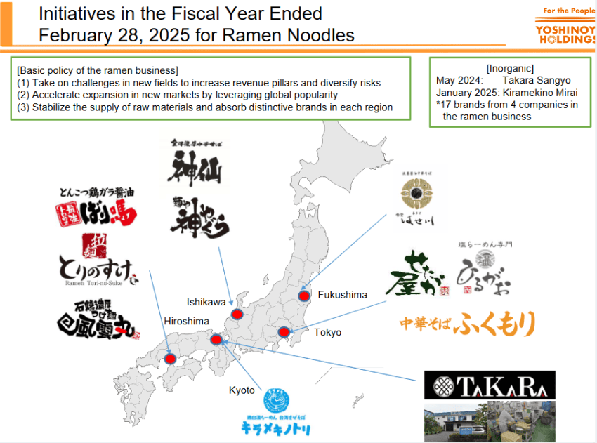 到2024年4月,吉野家收購了面向拉麪店的麪條、湯、醬料等的製造和銷售的供應商寶產業(Takara Sangyo)。