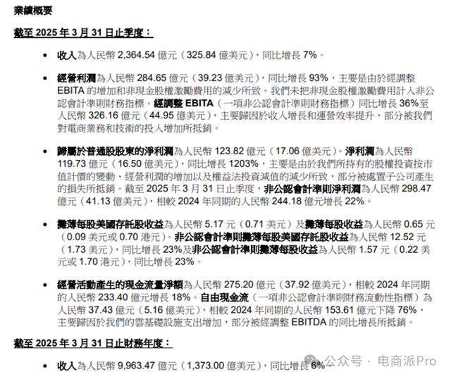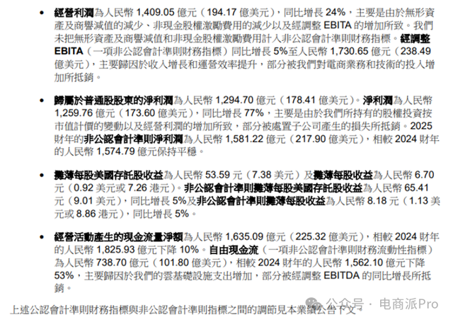 電商業務無疑是大家十分關注的,據瞭解,2025財年,淘天集團營收為4498.27億元,同比小幅增長3%;經營利潤為1962.32億元,同比增長1%。同樣,第四季度的營收也同比僅增長9%,經調整EBITA同比增長8%。