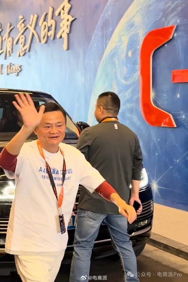 4月10日當天,正值阿里雲15週年紀念日,馬雲身穿白色T恤,佩戴了阿里新版工牌,衣服還印有“阿里雲15週年紀念日”的英文字樣。