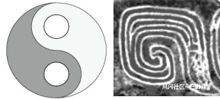 辨析了銅像衣服大橢圓套小橢圓天文地理科技涵義後,再來辨析上面兩個六條螺旋線相交構成的圖案表達的宗教文化涵義。