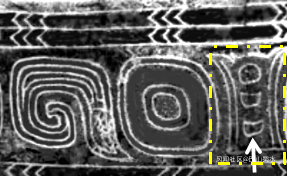右圖是三星堆立人圈手立人銅像前面衣服,經過技術處理的透視圖。