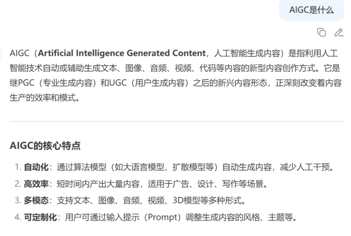 你可能沒聽過AIGC,但你一定用過它。AIGC全稱為“Artificial Intelligence Generated Content”,翻譯過來就是“人工智能生成內容”,即利用人工智能技術來生成各種形式的內容,包括文字、音樂、圖像、視頻等等。所以我們平時用ChatGPT、Deepseek、豆包等等軟件來生成文本都是使用的AIGC技術。