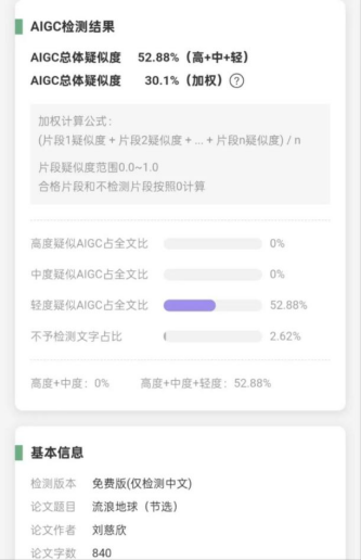 (《流浪地球》的AIGC檢測高達52.88%)