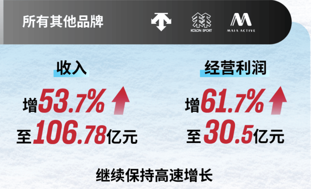甚至在今年安踏的財報長圖裏,MAIA也只是淺淺出現一下,和迪桑特、KOLON並列在53.7%增長中,連實際佔比都未披露。