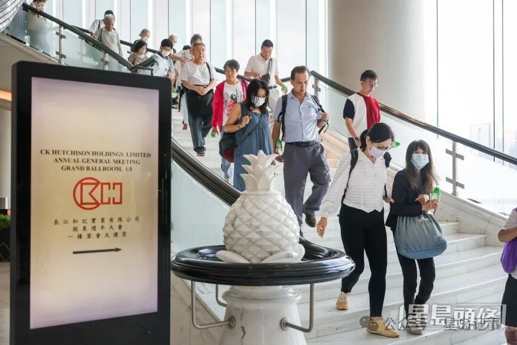 ▲長和(001)舉行股東周年大會,採取混合模式,現場所見超過100名股東親身出席。