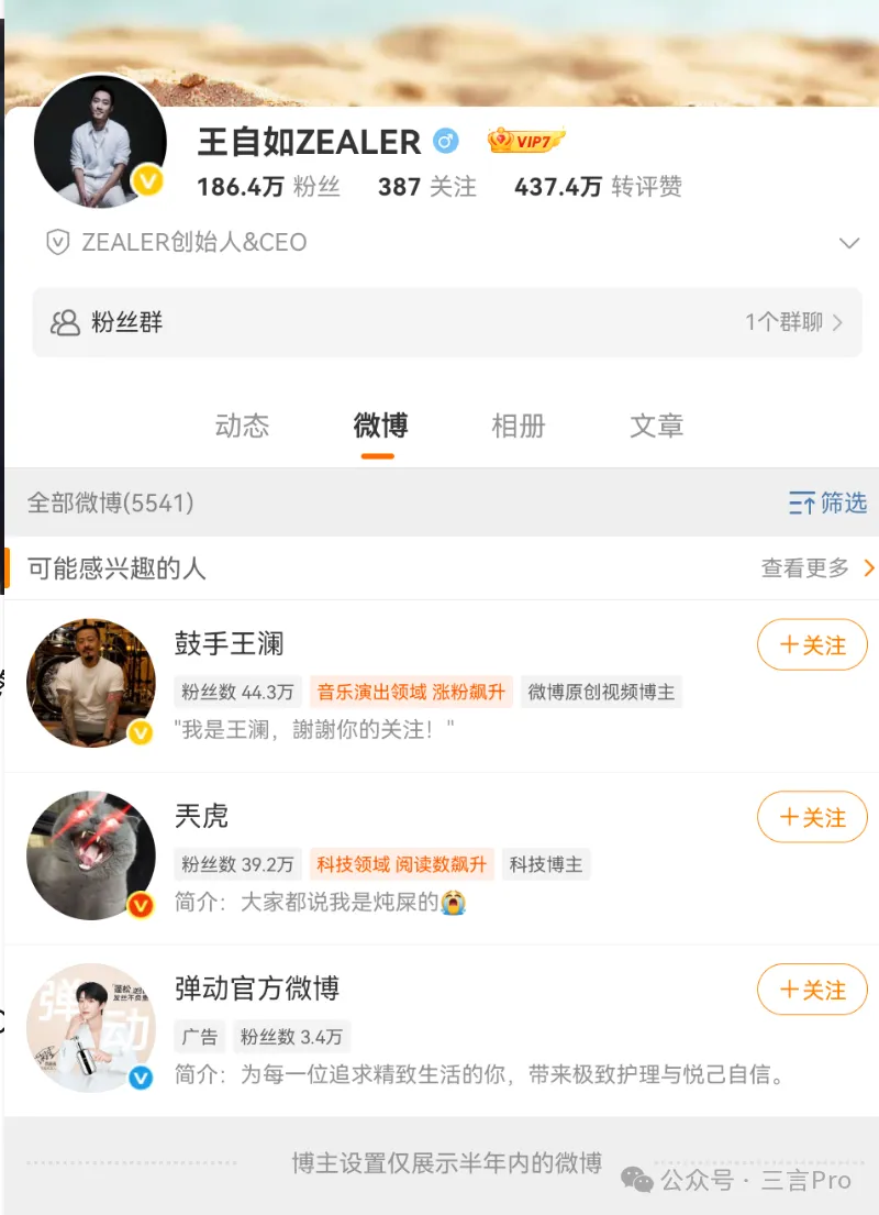 目前,王自如微博認證還是“Zealer創始人兼CEO”,粉絲量186.6萬;但微博設置半年可見,已長期未更新任何動態。