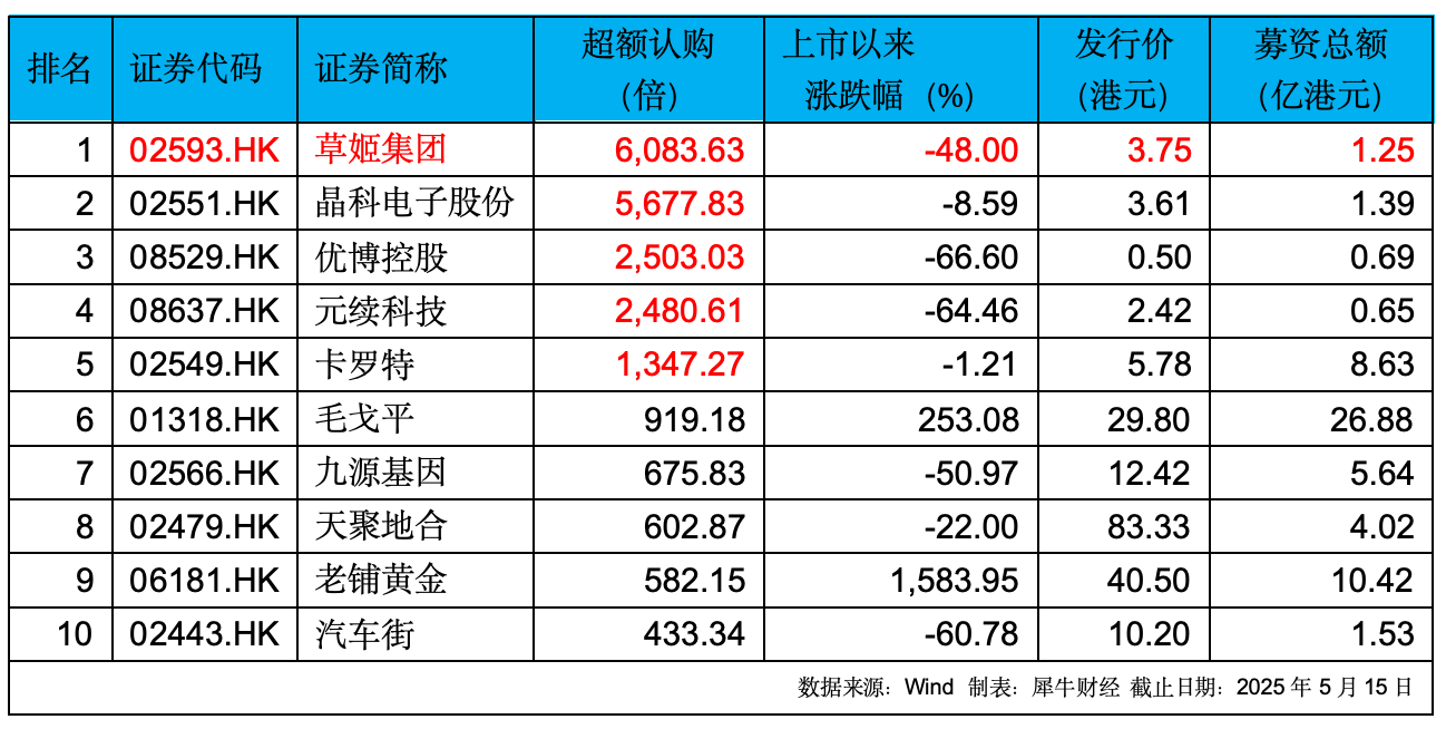 港股IPO盤點:6083倍並非“救命稻草” 草姬集團超額認購“神話”破滅_風聞